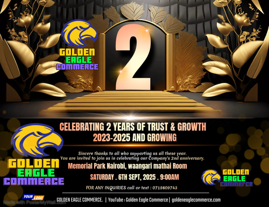 Join us for the Golden Eagle Commerce 2nd Anniversary Celebration on Saturday, 6th September 2025, at Memorial Park Nairobi, Wangari Maathai Room. ? ...